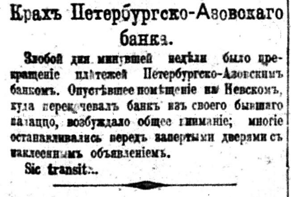 В 1903 году банк прекратил существование в связи с несостоятельностью.