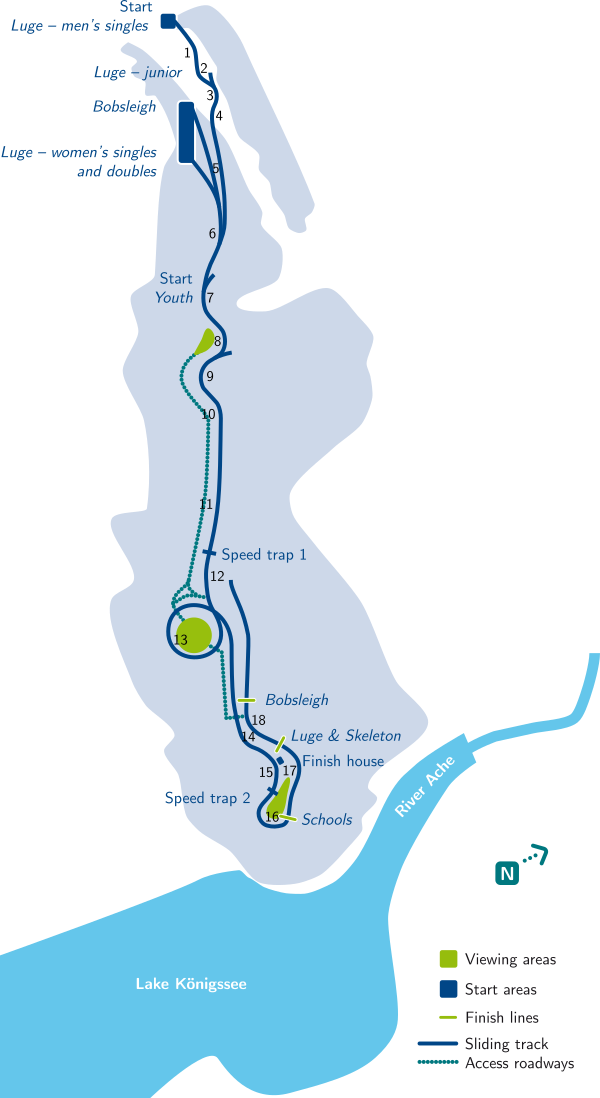 Трасса примыкает к северной оконечности озера Кёнигсзе (нем. Königssee). Построена в 1968 году. Это первая в мире постоянная санно-бобслейная трасса с искусственным охлаждением.
