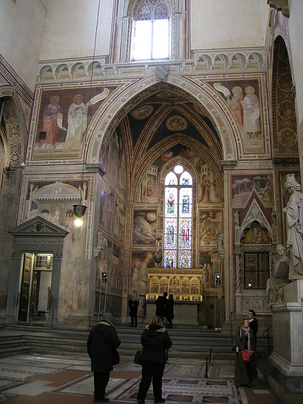 Стены главного алтаря расписаны фресками Аньоло Гадди (ок. 1380—1390) на тему обретения Истинного Креста[8][9]. Сюжеты фресок в основном следуют «Золотой легенде» Иакова Ворагинского и послужили образцом для множества последующих живописных циклов на данную тему.