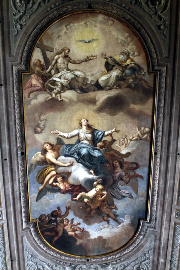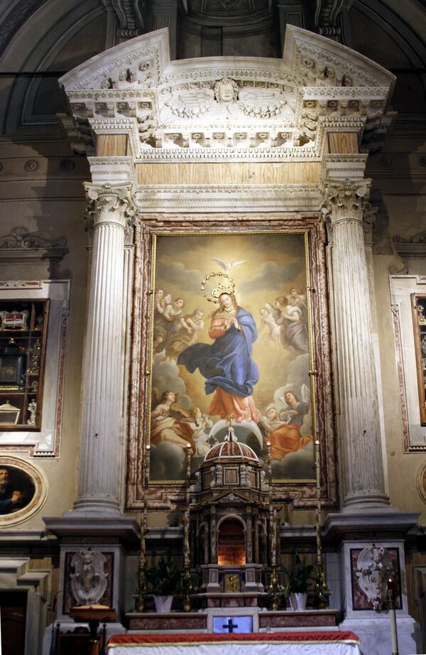 Главный алтарь построен из мрамора по распоряжению папы Урбана VIII; его герб можно увидеть у основания. Алтарная картина «Непорочное Зачатие» Джованни Ланфранко погибла при пожаре, в алтаре находится копия оригинала работы Джоаккино Бомбелли (1814). Либорио Коччетти написал на цилиндрическом своде фреску «Взятие Девы Марии на небеса» (Аssunzione della Vergine Maria in cielo, 1796).