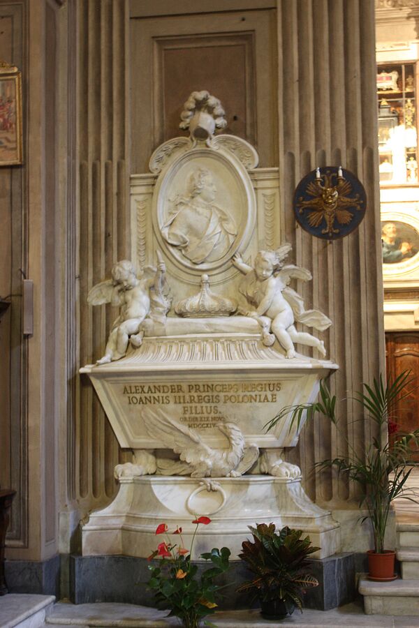 Слева от главного алтаря находится мраморная гробница польского князя Александра Собеского, умершего в 1714 году, сынa польского короля Яна III Собеского, победителя турок под стенами Вены работы Камилло Рускони.