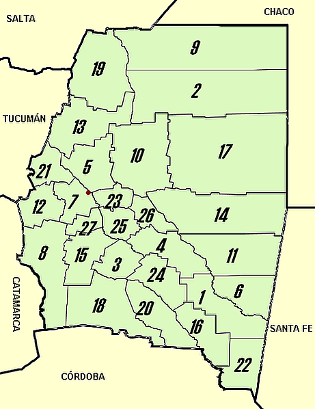 Провинция Сантьяго-дель-Эстеро разделена на 27 департаментов: