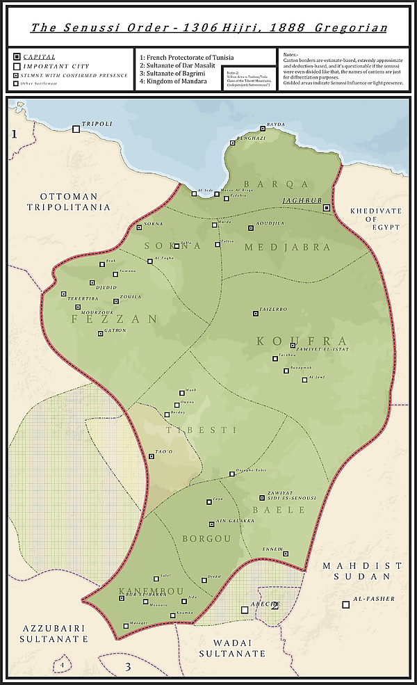 При Мухаммаде аль-Махди тарикат сумел распространить своё влияние на значительную часть Северной и Центральной Африки. Сануситы негативно воспринимали турецкое господство в Киренаике, активно боролись против французских колонизаторов в Центральной Африке и в Алжире (1902—1913). В 1911—1932 годах Сенусия возглавляла борьбу арабов Ливии с итальянскими войсками[2]. В 1951 году глава Сенусии — Мухаммед Идрис (Идрис I) стал королём Ливии. В 1969 году Мухаммад Идрис (находившийся с визитом в Турции) был свергнут в ходе военного переворота, во главе с полковником Муаммаром Каддафи.