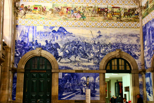 Панно изображают пейзажи, этнографические сюжеты, а также исторических персонажей и события, например рыцаря Эгаш Мониш и Альфонсо VII Леона (XII век), Битву при Аркуш-де-Валдевеш (1140), прибытие короля Жуана I и Филиппы Ланкастер в Порту (1387) и завоевание Сеуты (1415).