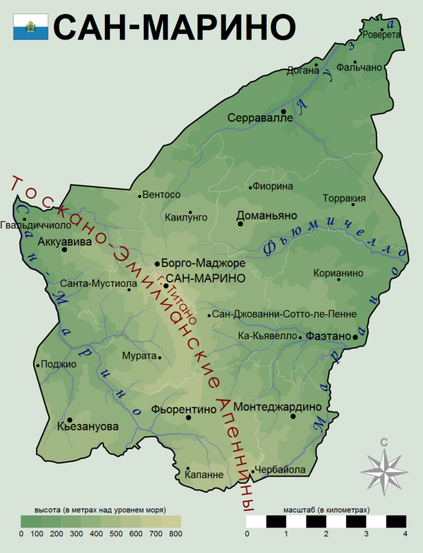 Сан-Мари́но (итал. San Marino), официально — Респу́блика Сан-Мари́но[5][6] (итал. Repubblica di San Marino), также известное как Светле́йшая Респу́блика Сан-Мари́но (итал. Serenissima Repubblica di San Marino) одно из самых маленьких государств в мире. Находится в Южной Европе, со всех сторон окружено территорией Италии. В своих нынешних границах Сан-Марино — самое старое государство Европы. Государство претендует на звание старейшего суверенного государства в мире.