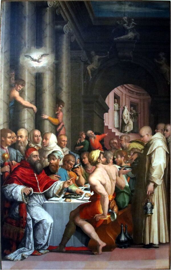 Одной из самых необычных особенностей комплекса является восьмиугольный монастырь, уникальный в монастырской панораме Болоньи, построенный позднее церкви по проекту Фьорини между 1602 и 1603 годами, расписанный фресками Лодовико Карраччи и некоторыми из его учеников[6].Известно также, что в 1539—1540 годах Джорджо Вазари написал несколько фресок и три картины для трапезной (одна из которых была утрачена, а две другие были переданы в Национальную пинакотеку в Болонье), а в 1567 году было достроено боковое крыло дормитория. Заканчивал строительство Пьетро Фьорини, который завершил лестницу в 1588 году, клуатр (позднее украшенный Чезаре Бальони) в 1590 году и гостевой дом в 1592 году.