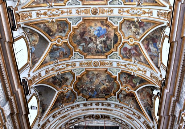 Центральный неф в своде украшен серией фресок, разделённых на три пролёта работы Франческо Солимены, датированных 1696 годом, изображающих жизнь Святого Николая, а также добродетели и апостолов в боковых частях возле окон. В капеллах боковых нефов находятся фрески Паоло Де Майо, Никола Мариа Росси, Франческо де Муры, неизвестного последователя Луки Джордано и других неаполитанских художников. Фрески купола, датированные 1734 годом, выполнил Франческо де Мура. На них изображены сцена Рая в центральной части и восемь Учителей Церкви на коротких участках барабана между верхними окнами.