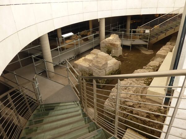 С 2006 года «крипта Константина» открыта для обозрения под главным алтарём храма. Под стеклянным покрытием пола виден уровень первой церкви. На 1,37 метра ниже алтаря находится мраморное надгробие (2,12 м на 1,27 м), на одной стороне которого имеется одно круглое и два квадратных отверстия и выгравирована латинская надпись: «PAULO APOSTOLOMART» (Павел Апостоломученик). Под надгробием был найден саркофаг[22].