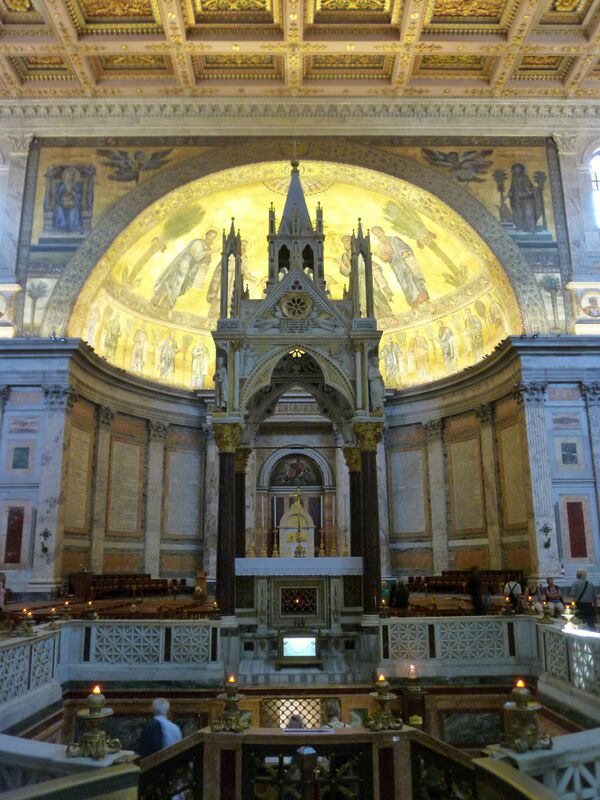В интерьере над алтарём в 1285 году Арнольфо ди Камбио соорудил огромный шатровый киворий на четырёх порфировых колоннах[10].