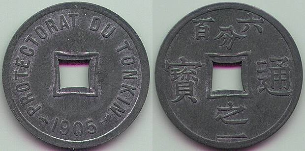 - французского протектората Тонкин — 1⁄600 индокитайского пиастра[4].