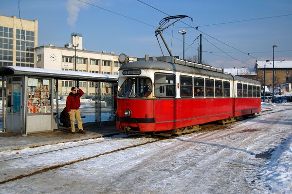 Возле вокзала есть трамвайная остановка, на которой останавливаются трамваи 1 и 4 маршрутов.