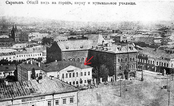 В 1800 году здание конторы, находившееся на Михайло-Архангельской площади Саратова сгорело.[23] Новое здание Саратовской конторы опекунства иностранных поселенцев было построено в 1802 году под руководством известного архитектора Х. И. Лоссе. Простой дом, выполненный в классическом стиле, не имел каких-либо излишеств. Был расположен в Саратове, на улице Никольской (ныне — улица Радищева). Снесено в 1981 году. В настоящий момент на этом месте находится студенческое общежитие консерватории.[24]
