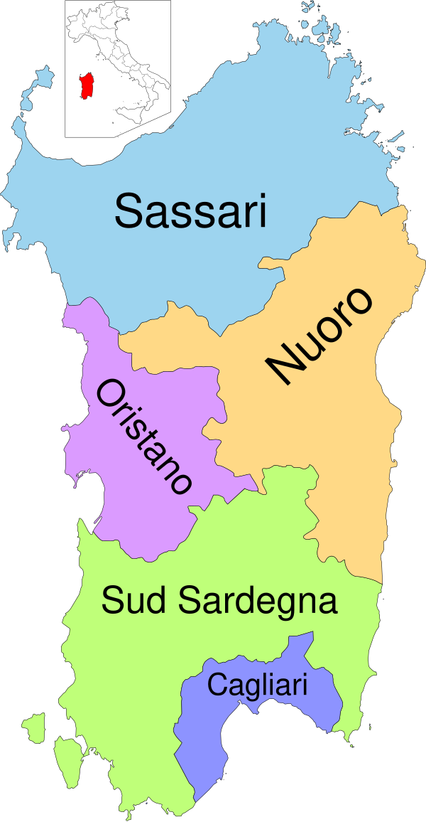 Область Сардиния разделена на 4 провинции и 1 метрополитенский город (с 2016 года[12]):