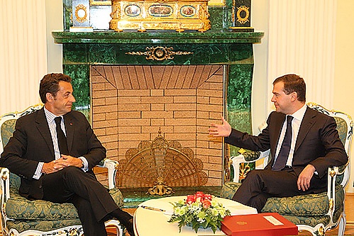 22 мая 2007 года состоялась первая телефонная беседа Саркози с Владимиром Путиным[16]. Традиции голлизма ориентированы на «особые» партнёрские отношения. Во время предвыборной кампании в феврале 2007 года Саркози говорил о необходимости «эволюции России» в области прав человека, упомянув 200 тысяч погибших и 400 тысяч беженцев в результате чеченского конфликта. Разговор с Путиным сопровождался развёрнутым комментарием Елисейского дворца, в котором президент Саркози отозвался о России и её властях более благожелательно. Николя Саркози заявил, что «придаёт важность привилегированным отношениям между двумя странами», что Россия «великое государство» (grande nation), а Путин — «человек, с которым можно говорить», обеспечивший «стабильность России». Наблюдатели отмечали, что Путин поздравил Саркози с избранием лишь через двое суток после официального объявления итогов выборов, а лично лишь через неделю после инаугурации, выдержав определённую паузу. Вместе с тем Кремль подчеркнул необходимость поддерживать высокий уровень интенсивности франко-российского сотрудничества и диалога.