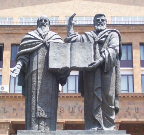 - Памятник Сааку Партеву и Месропу Маштоцу в Ереване, перед зданием ЕГУ (1943, базальт)