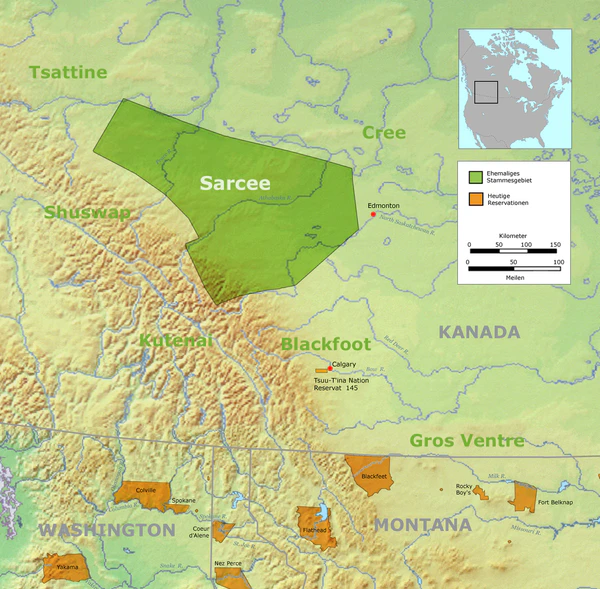 Их территория находится в пределах индейской резервации Тсу-Тина 145, восточная часть которой граничит с южной частью города Калгари. Площадь резервации составляет 283,18 км², а население согласно переписи 2001 года составляло 1982 человека, из которых представителями аборигенного населения были всего 885 человек. Всего же членами народа сарси по официальным данным на январь 2011 года были 1819 человек, из которых на территории своей резервации жило 1398 человек.