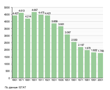 Население составляет 1836 человек (2008 г.), плотность населения составляет 18 чел./км². Занимает площадь 100 км². Почтовый индекс — 17046. Телефонный код — 019.