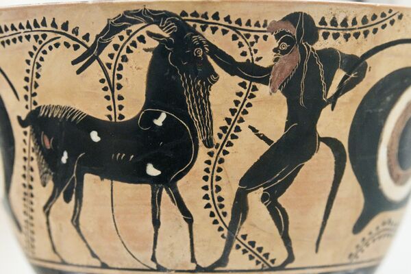 Об их происхождении рассказывает Гесиод[6]. Они впервые приготовили вино[7]. Славились пристрастием к алкоголю и избыточной сексуальной активностью. Сатиры составляли свиту бога виноделия Диониса — всегда веселящуюся и поющую. Легенда гласит, что именно сатиры спасли критскую царевну Ариадну, которую её афинский возлюбленный Тесей оставил спящей на берегу Наксоса.