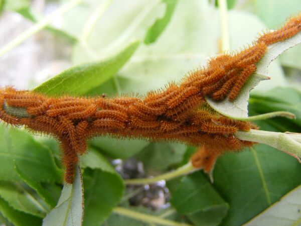 Гусеница зелёного цвета, питаются листьями следующих растений (но этим список не ограничивается):