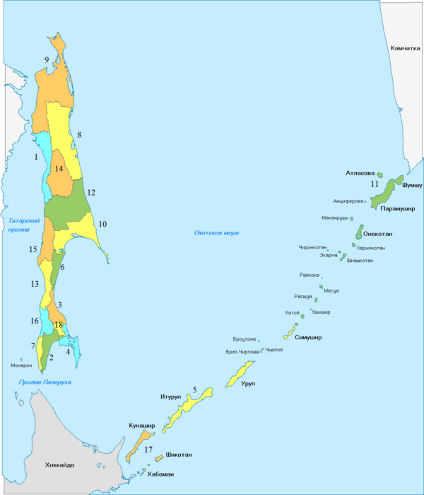 | Крупнейшие города | Южно-Сахалинск, Корсаков, Холмск, Оха | ||||