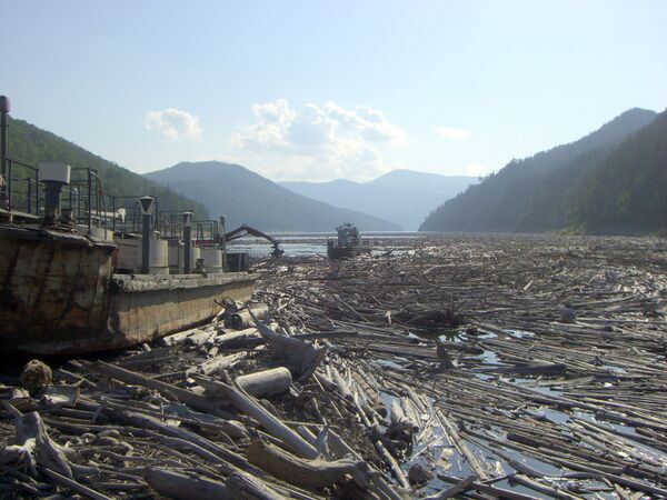 В зоне затопления водохранилища находилось более 3 млн м³ древесины. В связи с мелкоконтурностью и разбросанностью территорий произрастания деловой древесины, труднодоступностью лесных массивов из-за отсутствия подъездов, а также невозможностью обеспечения безопасной работы на крутых склонах каньона Енисея было принято решение о затоплении данной древесины в водохранилище на корню. Полная лесоочистка была произведена только на озёрной части ложа водохранилища на территории Тувы, на рыбопромысловых участках и местах отстоя судов, а также части зоны переменного уровня водохранилища вблизи плотины. За время эксплуатации водохранилища большая часть, более 2 млн м³ затопленной древесины всплыла на его поверхность, после чего часть древесины, около 0,6 млн м³ вновь затонула вследствие намокания. В связи с большим объёмом водохранилища и медленным разложением древесины существенного влияния на качество воды в водохранилище она не оказывает. Всплывшая древесина собирается с акватории в нескольких запанях, образованных в заливах водохранилища, постепенно извлекается из водохранилища и складируется на берегу. Извлечено более 0,9 млн м³. Данная древесина имеет низкое качество, в связи с чем в 2010 — 2016 годах около 0,73 млн м³ древесины было утилизировано путем измельчения и захоронения на полигоне[25].
