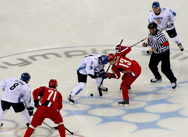 В первом матче на турнире 14 февраля сборная России в непростой борьбе победила белорусов (6:4). На следующий день россиян ждала встреча с хозяевами турнира, которая завершилась вничью (2:2). В заключительном матче группы россияне выигрывали после первого периода у финнов со счётом 1:0 (отличился Павел Буре), но затем пропустили трижды и уступили. На этой стадии в плей-офф выходили все команды из группы, положение в группе влияло лишь на определение соперника по четвертьфиналу.