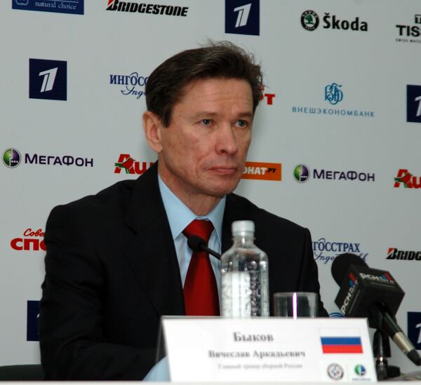 Руководство «Авангарда» не было заинтересовано в том, чтобы Белоусов работал в сборной, кроме того, после прихода в ФХР Третьяка стало ясно, что новый президент склонен сделать ставку на другого тренера. Похожая ситуация была и в «Ак Барсе», руководство которого хотело, чтобы Билялетдинов работал только в клубе (казанский клуб стал чемпионом России в сезоне 2005/06, выиграв в плей-офф 12 из 13 матчей). Был вариант, что Билялетдинов может стать главным тренером сборной, а сравнительно малоопытный тренер Быков будет сначала его ассистентом, но затем эта схема отпала. Быков был назначен главным тренером сборной 11 августа 2006 года, подписав контракт на два года, подразумевающий работу на чемпионатах мира 2007 и 2008 годов[38]. Помощником Быкова стал его ассистент в ЦСКА 48-летний Игорь Захаркин. Сергей Немчинов занялся работой по «отслеживанию» российских игроков в НХЛ.