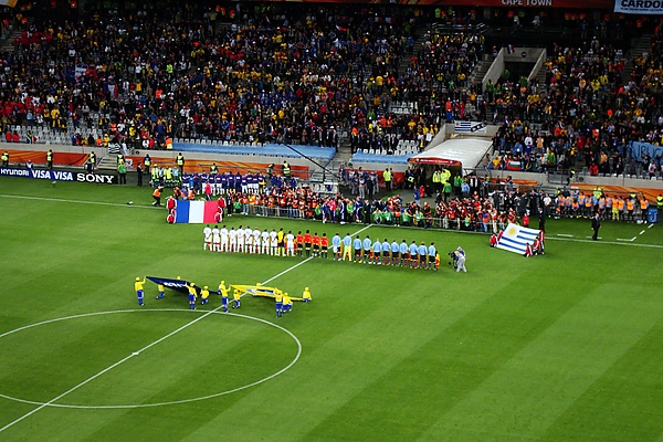 Французские болельщики поют гимн Франции перед каждым матчем. 6 октября 2001 года сборная Франции играла с Алжиром на «Стад де Франс». Гимн Франции был освистан и матч был прерван после того, как на поле выбежали десятки алжирских болельщиков[169].