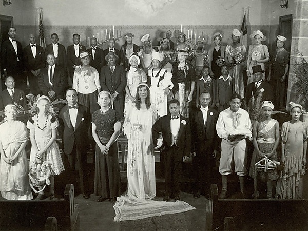 Свадьба без женщин[22][23] (англ. womanless wedding) — это традиционный общественный «ритуал инверсии», который был популярен в США в начале XX века[24]. В этом комическом ритуале участвовали только мужчины, которые исполняли роли подружек невесты, девочек-цветочниц, матери невесты и т.д. Зачастую на мероприятии собирали деньги для благотворительных организаций, общественных организаций и церквей.