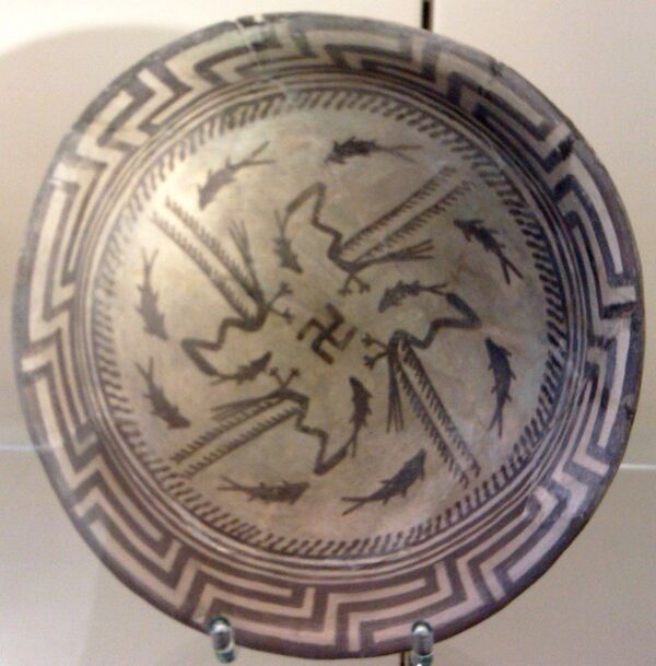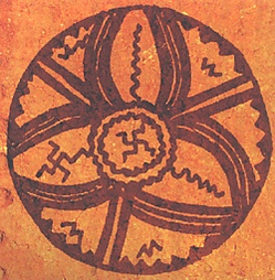 Древнейшее известное изображение свастики (с прямыми углами) найдено в Арпачии (на севере Ирака) халафской эпохи и датируются V тысячелетием до н. э.[10] Также свастика обнаружена на глиняных сосудах из Самарры (центральный Ирак), также V тысячелетия до н. э.
