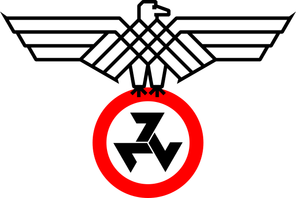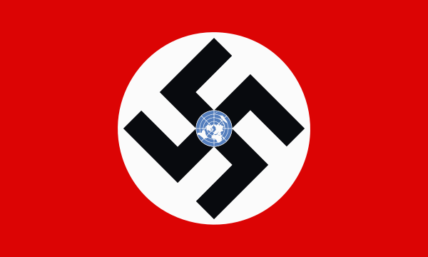 Вопреки распространённому мнению, идея сделать свастику символом нацистского движения не принадлежала лично Гитлеру. Хотя Немецкая рабочая партия (DAP) (предшественница NSDAP) и Общество Туле имели некоторые идеологические расхождения, они пользовались общим символом — свастикой[125]. Первоначальный дизайн флага принадлежит Фридриху Крону, зубному врачу[128], а также члену Общества Туле и Germanenorden, имевшему репутацию в DAP[125], богатую домашнюю библиотеку которого посещал Гитлер[128]. В мае 1919 года Крон составил меморандум «Может ли свастика служить символом национал-социалистической партии?», где предложил левонаправленную свастику, то есть направленную по часовой стрелке, как в теософии и Germanennorden, в качестве символа DAP. Такое направление свастики он выбрал, поскольку в буддизме оно символизирует удачу и здоровье, тогда как правая ориентация, против часовой стрелки, — упадок и смерть. Большинство свастик Общества Листа и Общества Туле имели, однако, правую ориентацию. Гитлер отдавал предпочтение ориентированной вправо свастике с прямыми линиями. В ходе обсуждений в комитете DAP он смог убедить Крона изменить проект. Крону принадлежит и авторство распределения цветов: чёрная свастика в белом кругу на красном фоне. Впервые данный флаг нового движения, предложенный Кроном и модифицированный Гитлером, появился на митинге НСДАП в Штарнберге 20 мая 1920 года[125]. Как символ Национал-социалистической немецкой рабочей партии свастика была утверждена Гитлером летом 1920 года[129][130].