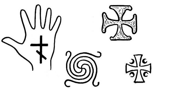 По данным А. Голана, в русской традиции правая и левая свастика трактуются несколько иначе: одна обозначает движение по солнцу и символизирует добро, другая — движение против солнца и считается недобрым знаком (в данном случае оппозиция „добрый — недобрый“ соотносится с „мужской — женский“)[41].