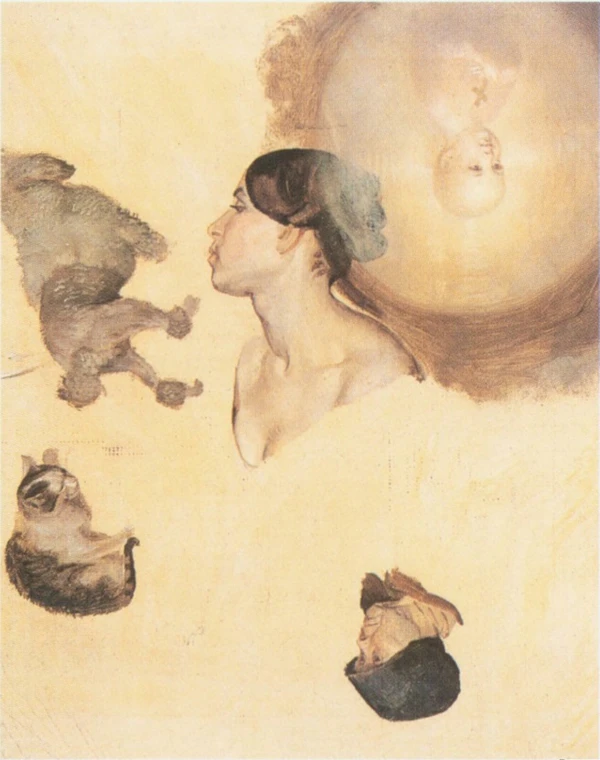 Из живописных этюдов известно полотно из собрания Государственного Русского музея, на котором изображено сразу несколько деталей: «Голова невесты. Голова старухи. Кошка» (холст, масло, 34,5 × 29 см, инв. Ж-3816; на том же полотне изображены этюды, не связанные со «Сватовством майора» — «Младенец с крестом» и «Пудель»)[60].