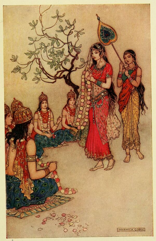Сваямва́ра (санскр. स्वयंवर) — практиковавшийся в Древней Индии обычай выбора девушкой жениха, одна из разновидностей брака гандхарва (виваха)[2]. О проведении сваямвары принимал решение отец девушки. Для проведения церемонии выбирались благоприятные время и место. Цари посылали гонцов в соседние царства, приглашая царевичей для участия в сваямваре. Простые люди приглашали претендентов на руку девушки из округи. В назначенный день, претенденты прибывали в дом отца девушки и просили её руки. Родители девушки оценивали их мужество и качества в разного рода соревнованиях. Сделав свой выбор, девушка надевала на своего избранника цветочную гирлянду, после чего немедленно проводилась свадьба.