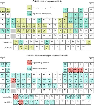 - ↑ Somayazulu, Maddury. Evidence for Superconductivity above 260 K in Lanthanum Superhydride at Megabar Pressures : [англ.] / Maddury Somayazulu, Muhtar Ahart, Ajay K. Mishra … [et al.] // Physical Review Letters. — 2019. — Vol. 122, no. 2 (14 January). — Art. 027001. — doi:10.1103/PhysRevLett.122.027001.