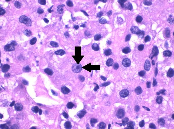 - 2-я степень: Клетки опухоли имеют очерченное, хорошо различимое при увеличении в 400 раз ядрышко с эозинофильной, а не с базофильной окраской;