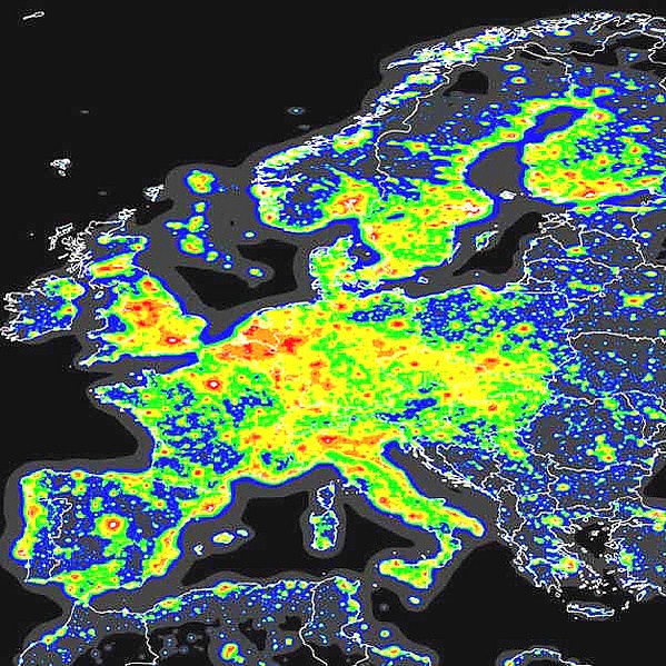 Световое загрязнение сопровождает явление индустриализации и встречается прежде всего в густо заселённых регионах развитых стран. В Европе больше половины населения так или иначе регулярно сталкивается со световым загрязнением. Ежегодный рост светового загрязнения в разных странах Европы составляет от 6 % до 12 %.