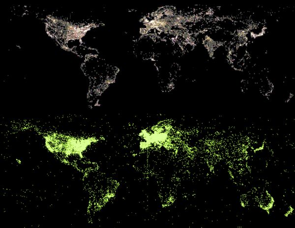 - lightpollutionmap.info — Всемирная карта светового загрязнения