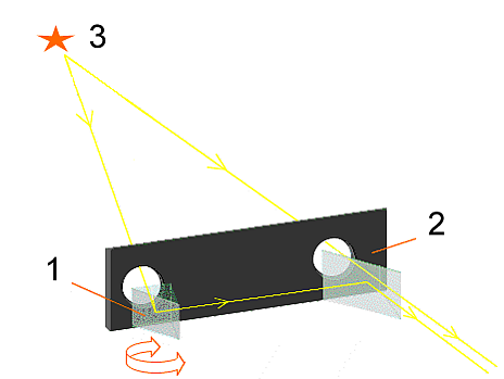 Излучение от лазера направляется в модулятор (конденсатор Керра и поляроид-анализатор) и при помощи оптической системы посылается на удалённый отражатель. Приёмная оптическая система собирает часть отражённого потока и фокусирует его на катоде фото умножителя. Перед ФЭУ установлен серый клин (ослабитель светового потока) СК и узкополосный интерференционный оптический фильтр ИФ.