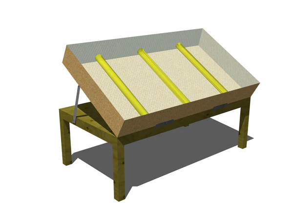 Состоит из прозрачной или полупрозрачной (матовой) поверхности (столешницы), иногда наклонной или поворотной, и устройства для подсветки столешницы снизу (электрические лампы или зеркало для направления лучей Солнца)[3]. В случае фотохимического процесса нужно использовать источники света, богатые ультрафиолетовами лучами, при ручном копировании, наоборот, подобные источники нежелательны.