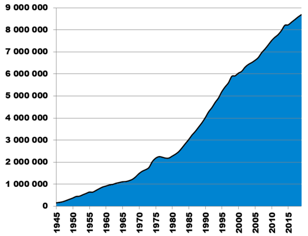 Благодаря миссионерской деятельности учение свидетелей Иеговы быстро распространилось за пределы США. К 1914 году Исследователи Библии действовали в 43 странах на всех континентах мира. В 1941 году численность свидетелей Иеговы превысила 100 тыс. человек[48], в 1963 году — 1 млн; в 1974 году — 2 млн, в 1985 — 3 млн; в 1990 — 4 млн; 1995 — 5 млн; 2000 — 6 млн. Свидетели Иеговы стали одной из самых распространённых религиозных организаций; в 1995 году они действовали в 212 странах мира, по числу стран присутствия уступая лишь католикам и пятидесятникам[49].