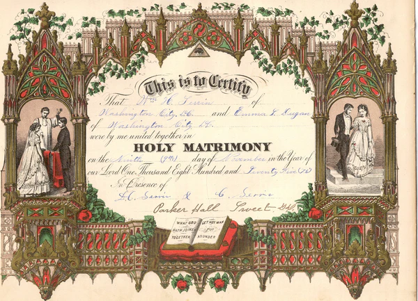 В Соединенных Штатах свидетельство о заключении брака представляет собой запись о заключении брака на том же документе, что и разрешение на брак или заявление о заключении брака.