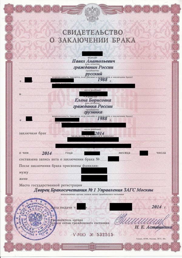Свидетельство о заключении брака
