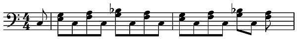 Свингующее фортепиано также использовало первую и третью доли как предвосхищение акцентированных второй и четвёртой долей в двухдольных басовых фигурах[12].