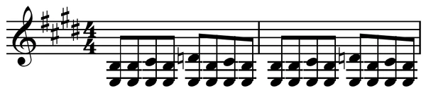 В самом тонком проявлении свинга пары восьмых (или шестнадцатых) нот трактуются как слегка неравные по длительности. На другом полюсе — ритм «пунктирная восьмая — шестнадцатая», где длинная нота в три раза длиннее короткой. Преобладающие «пунктирные ритмы» в ритм-секции танцевальных оркестров середины XX века точнее называть «шаффлом»[15].; они также характерны для барочных танцев и многих других стилей.