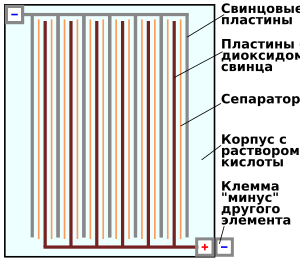 - ↑ 1 2 Свинцовый кислотный аккумулятор. Устройство и принцип действия аккумулятора. www.eti.su. Дата обращения: 1 июля 2018. Архивировано 1 июля 2018 года.