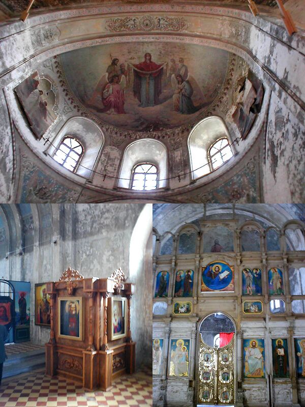 - Собор Богоматери Всех Скорбящих Радости (1898—1906)[31]. Построен в 1898–1906 гг., является замечательным памятником неовизантийского стиля. Автор проекта – казанский епархиальный архитектор Фёдор Николаевич Малиновский. В 2010-2013 гг. специалисты Межобластного научно-реставрационного художественного управления (бригада В.Ф. Косушкина) произвели реставрацию росписей. Четыре сохранившиеся композиции на линолеуме были демонтированы (заменены настенными росписями с той же иконографией) и после реставрации переданы в Музей-заповедник «Остров-град Свияжск»; ныне находятся в Художественной галерее музея-заповедника.
