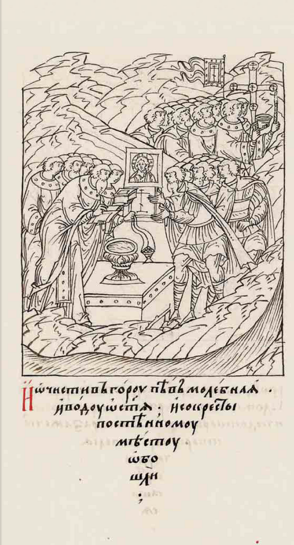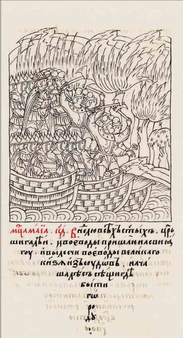 Егдаж преплавишася Суру реку, тогда и Черемиса горняя, а по их, Чуваша зовомые, язык особливый, начаша встречати по пяти сот и по тысяще их, аки бы радующеся цареву пришествию: понеже в их земли поставлен оный предреченный град на Свияге[2].