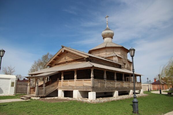 - деревянная Троицкая церковь (1551)[33]. Документально впервые упомянута в Писцовой книге Свияжска и Свияжского уезда 1565–1567 гг. Церковь была построена в строительных традициях древнерусского деревянного зодчества. В 2010 – 2011 гг. был проведен комплекс реставрационных работ бригадой реставраторов под руководством ГАП Института «Спецпроектреставрация» (Москва), под руководством архитектора-реставратора Б.Д. Лурье. Зданию возвращены характерные черты деревянного храма XVI века – восстановлена галерея-гульбище, снаружи частично открыта бревенчатая кладка и т.д. В последующие два года, в 2012–2013 годах, проведена реставрация иконостаса под руководством мастера-художника-реставратора В.Ф. Косушкина из Межобластного научно-реставрационного художественного управления (г. Москва); работу выполнила мастерская ОАО «Спецкаучукремстрой» (г. Казань).