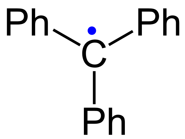 Впервые свободный радикал в растворе обнаружил американский химик Мозес Гомберг. В 1900 году он открыл трифенилметильный радикал, получив его действием серебра на трифенилметилхлорид. Из-за присутствия этого радикала раствор был окрашен в жёлтый цвет, а затем из раствора выпали белые кристаллы димера этого радикала.